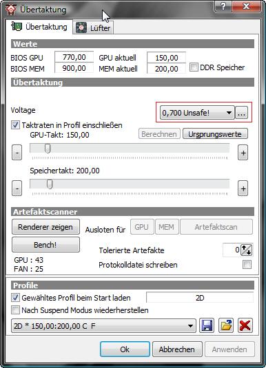 Bei ATI kannst du ruhig 150/200/0.7~0.8V einstellen.