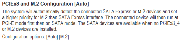 Nun wird die SSD auf meinem M.2 Steckplatz leider nicht erkannt. Laut Handbuch teilt sich dieser die Lanes mit PCIE_X8_4 slot dieser ist bei mir aber nicht belegt. Ich nutze nur den PCIe 3.0 x16_1 slot für meine Grafikkarte. Als CPU ist ein Intel Core i7 5820K 6x 3.30GHz verbaut.