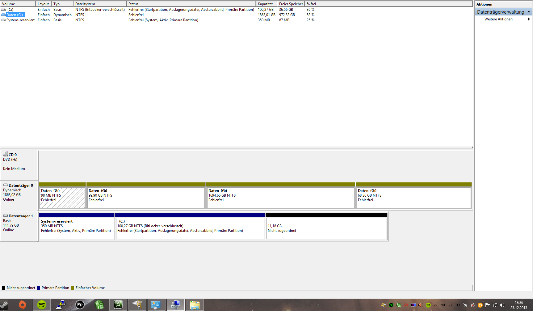 das komische ist auch, das unter Datenträgerverwaltung meine 2TB Platte in 4 Teile unterteilt ist? Aber sowohl Windows als auch oben in der Verwaltung wird es nur als eine Partition angezeigt. Kann das damit zusammenhängen?