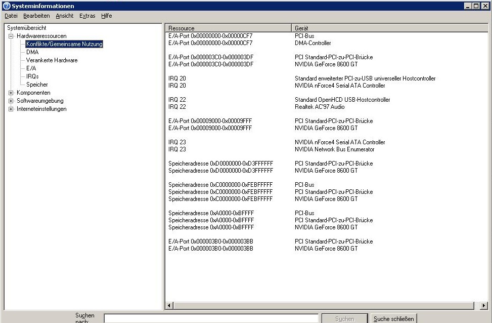 Sie steht auch in den Hardware resourcen nicht drin