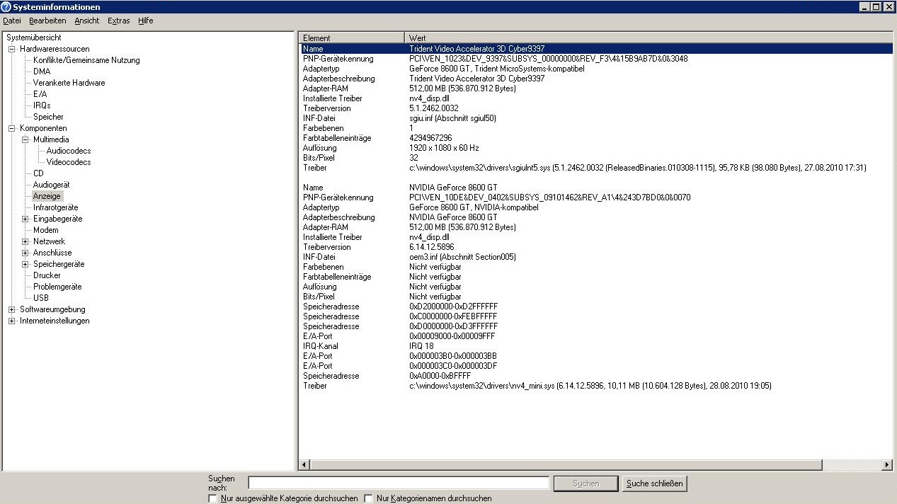 haben jetzt schon alles ausprobiert und die letzte lösung die uns eingefallen ist , die grafikkarte kriegt kein IRQ ..