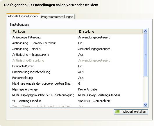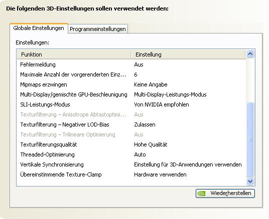 ... wenn es nicht zuviel Mühe macht: ein Screenshot der Einstellung eines beliebigen Spiels unter "3D-Einstellungen". Dann sehe ich sicher gleich welche Einstellung.