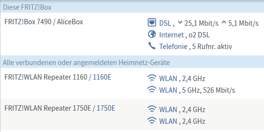 unten im EG Fritzbox 7490, 1 Etage Fritz!Repeater 1750E und 2 Etage ebenfalls Fritz!Repeater 1750E. Die beiden Repeater wollte ich als Access Point einsetzen, überall liegt LAN Kabel mit Internet.