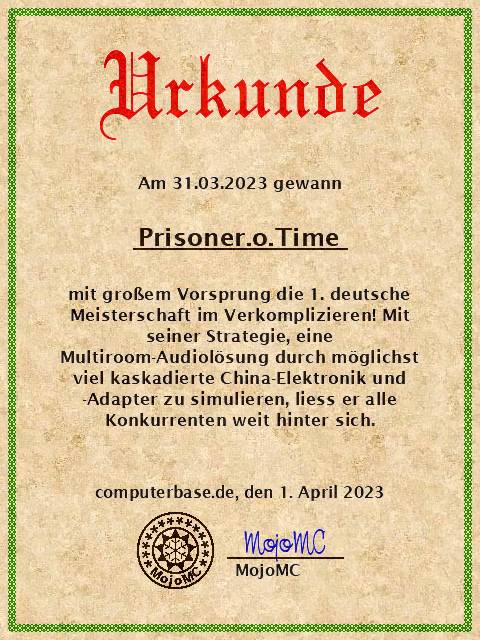 Adapter ist jetzt mal bestellt. Kommt evtl. im laufe des heutigen Tages noch an, dann kann ich das ganze gleich testen. Und je nachdem kann ich dann anfangen meine Setups um zu bauen.