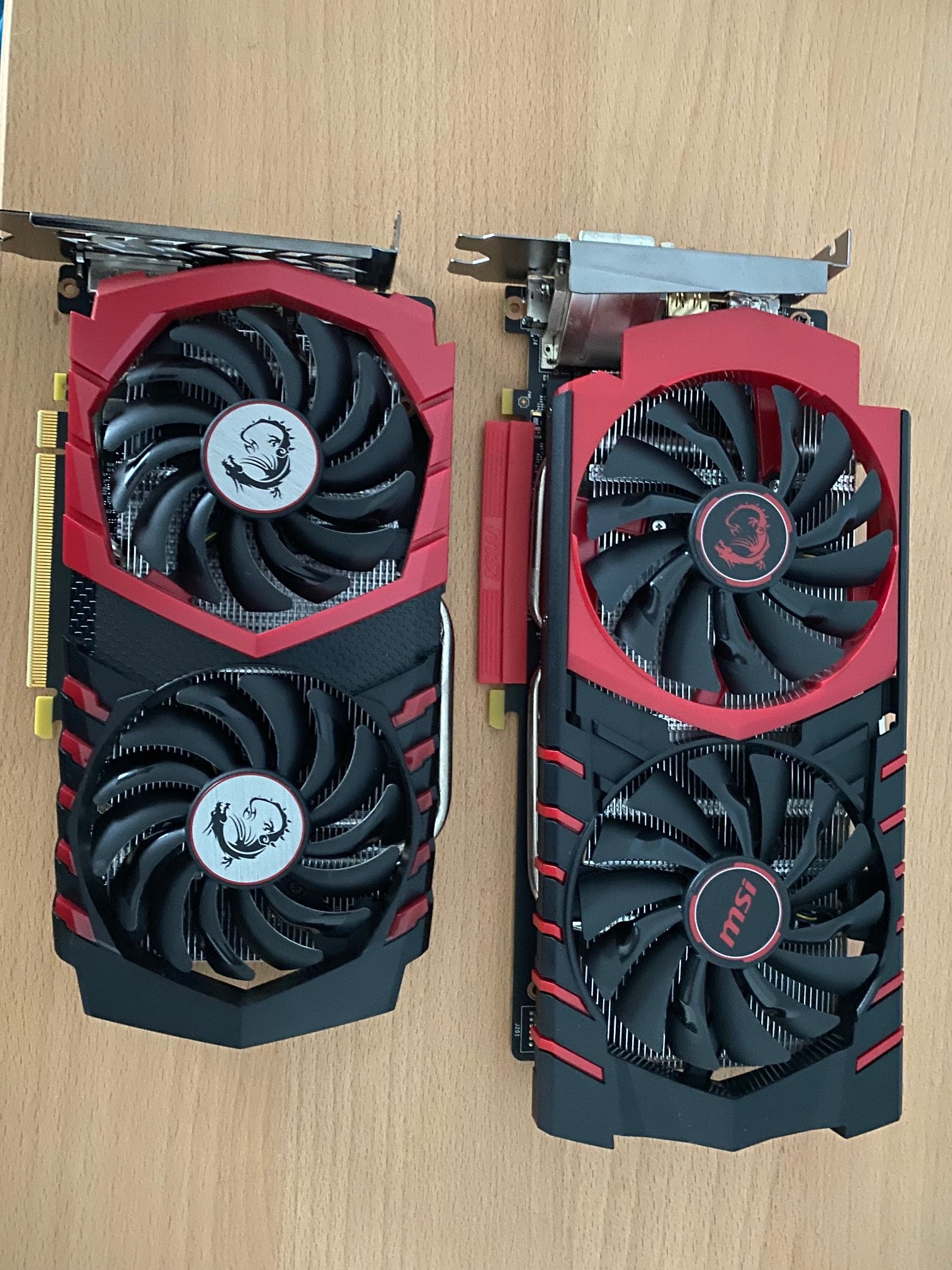- MSI GTX 950 2GB Gaming X (ist die "beste" MSI mit Zero-Fan und einen m. M. riesigen Kühler) ca. 4,5 Jahre alt