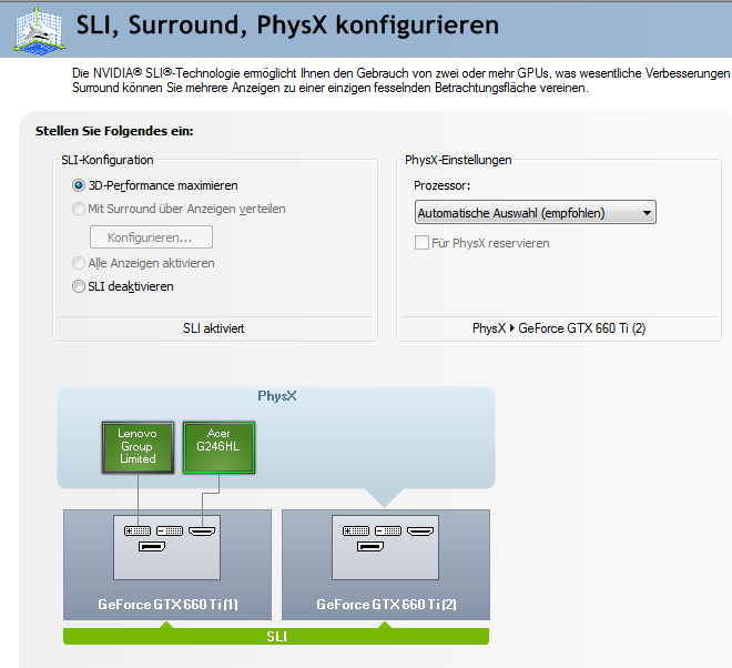 SLI ist in der Nvidia Systemsteuerung aktiviert.