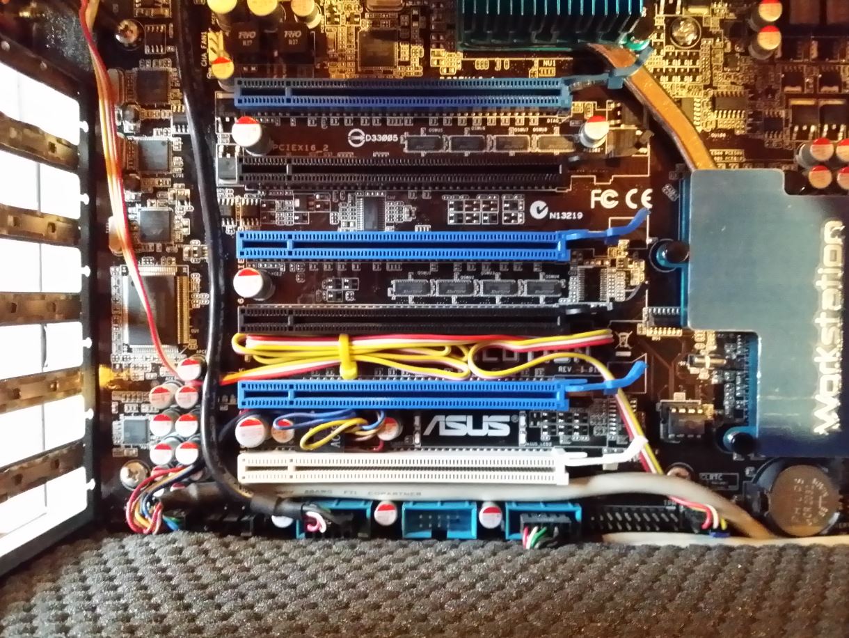 Auf dem Bild sind 4 Rote Kästchen zu sehen, die beiden großen roten Kästchen sollen meine beiden Graka darstellen, die zwei kleinen Kästchen unten sind die störenden Anschlüsse. Die zwei kleinen Kästchen sind angeschlossen und liegen wie man so schön sieht direkt unter der unteren Graka, somit kann ich die Graka nicht komplett in den Sockel drücken da die Anschlüsse darunter zu hoch sind.