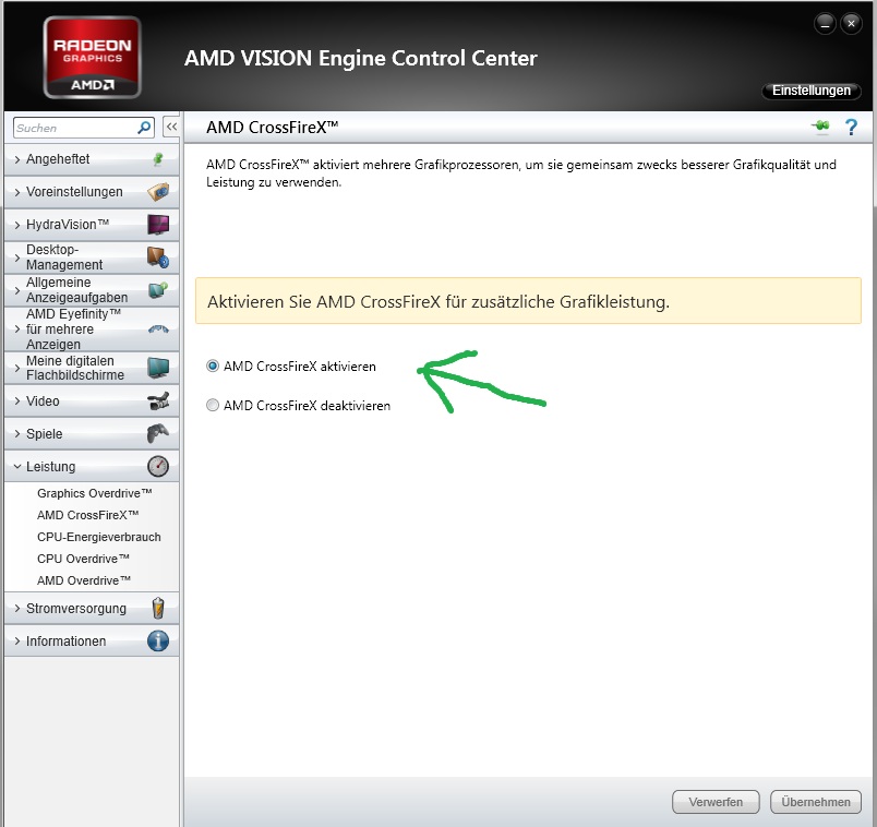 ich habe selber eine Sapphire HD 5870 1GB Vapor-X. Von nem Kumpel hab ich günstig ne Sapphire 5870 bekommen. Wir haben zum testen beide mal eingebaut. Leider kann ich nix finden, wo ich Crossfire aktivieren bzw. überhaupt sehen kann, dass Crossfire aktiviert ist.