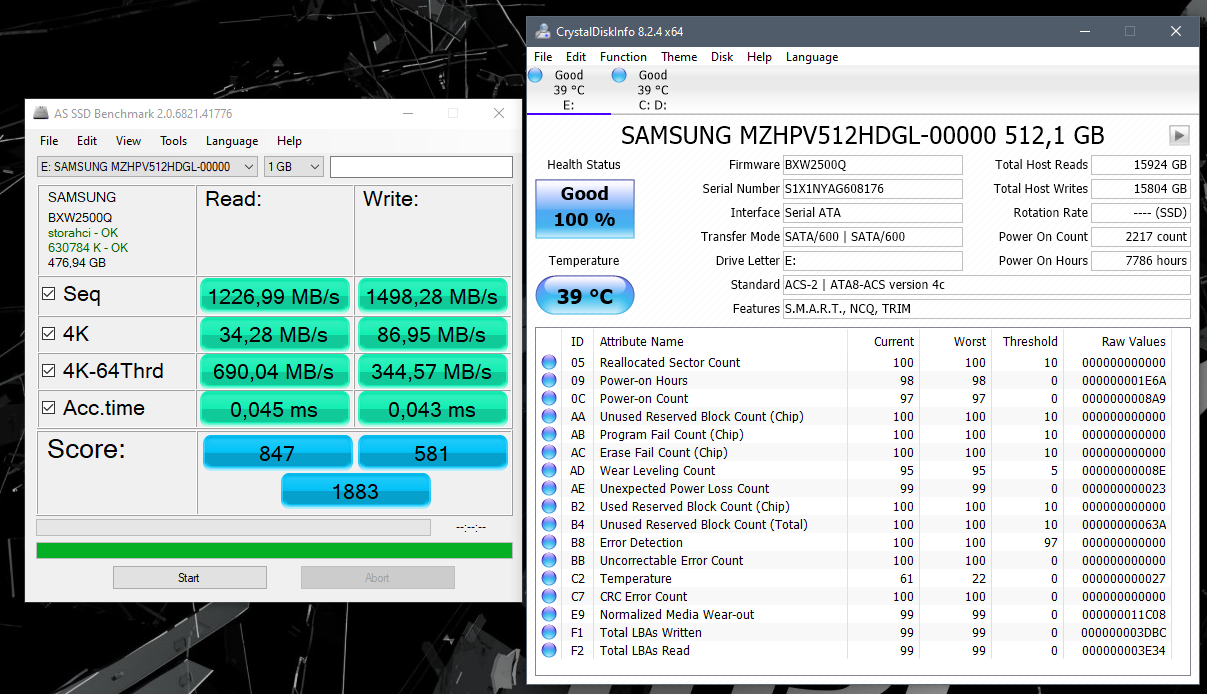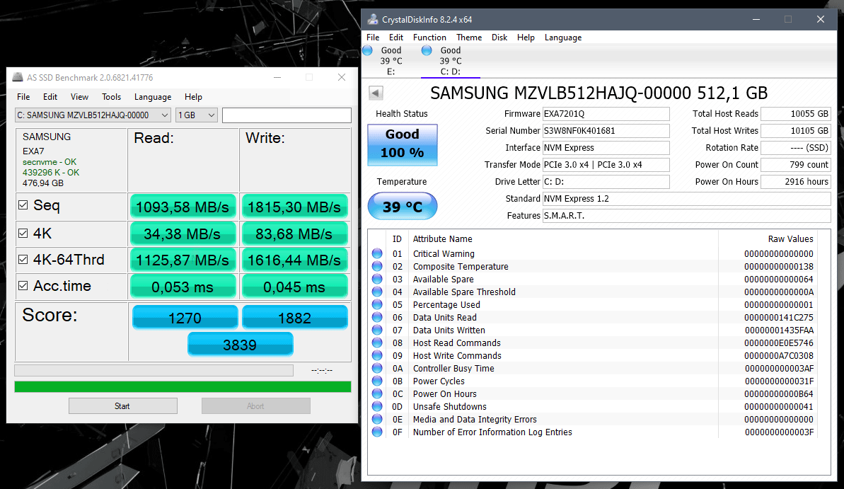 Hallo Leute, ich habe heute eine zweite NVMe SSD in meinem Laptop (MSI GS65 8RF) eingebaut, beide erreichen zwar fast volle Schreibgeschwindigkeit, aber die Lesegeschwindigkeit ist ungewöhnlich langsam.