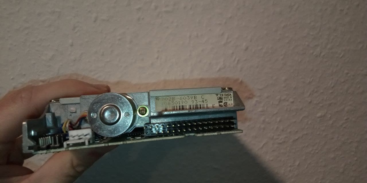 Ein entsprechendes Laufwerk habe ich noch übrig. Dieses hat einen 34 poligen Anschluss, wobei der zweite Pin unten links fehlt. Aber das ist normal, oder?