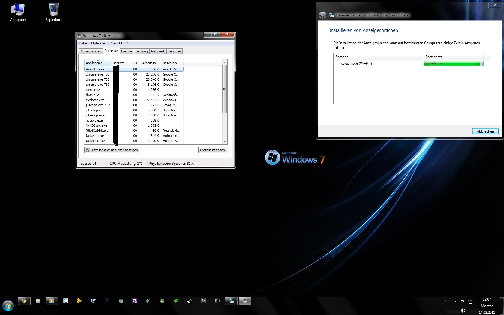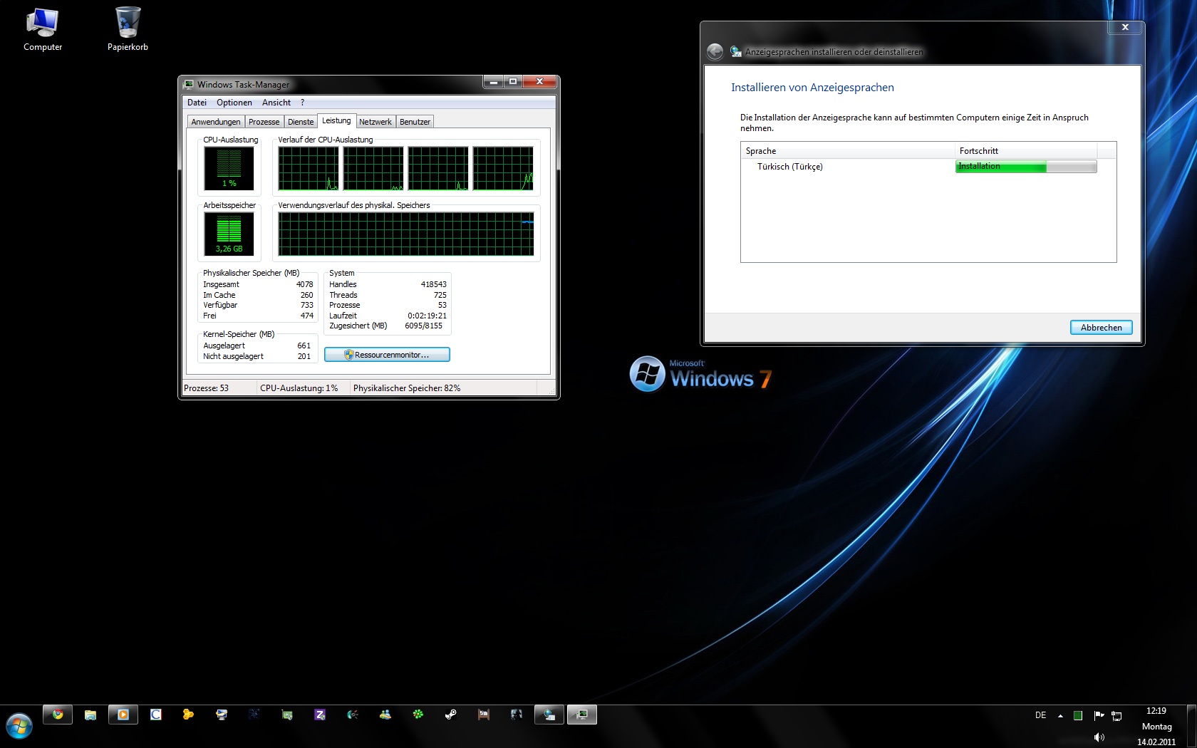 Guten Mittag, ich bin gerade dabei mein W7 Update zu beziehen und lasse einfach alles installieren auch die Sprachpakete. Jetzt hatte ich mal aus neugier um zu gucken wie die CPU ausgelastet wird den Taskmanager gestartet und er zeigt mir extreme 3,5-3,7 Gb auslagerung an :O
