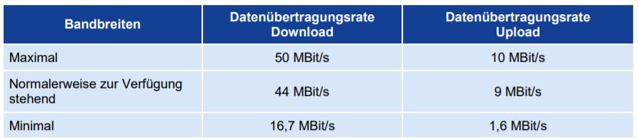 Die normalerweise zur Verfügung stehende Bandbreite (im Beispiel von 1&1 also 44 MBit/s muss sogar bei 90 % der Messungen erreicht werden.