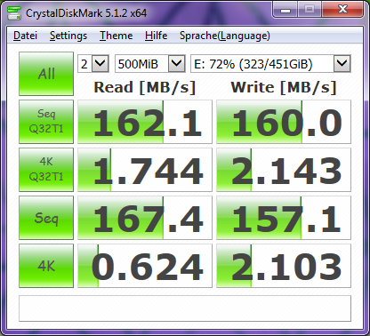 Die SSD auf der das Betriebssystem drauf ist funktioniert bei den gleichen Tests überdurchschnittlich gut, ist also nicht zu langsam, daher schließe ich ein generelles SATA oder Festplatten-kommunikationsproblem aus.