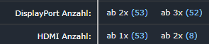 Die beiden großen Monitore sind per DP angeschlossen, der kleinste per HDMI.