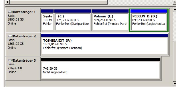 Alle Versuche mit Löschen etc wieder zu den 3 TB zurückzukommen schlagen fehl.
