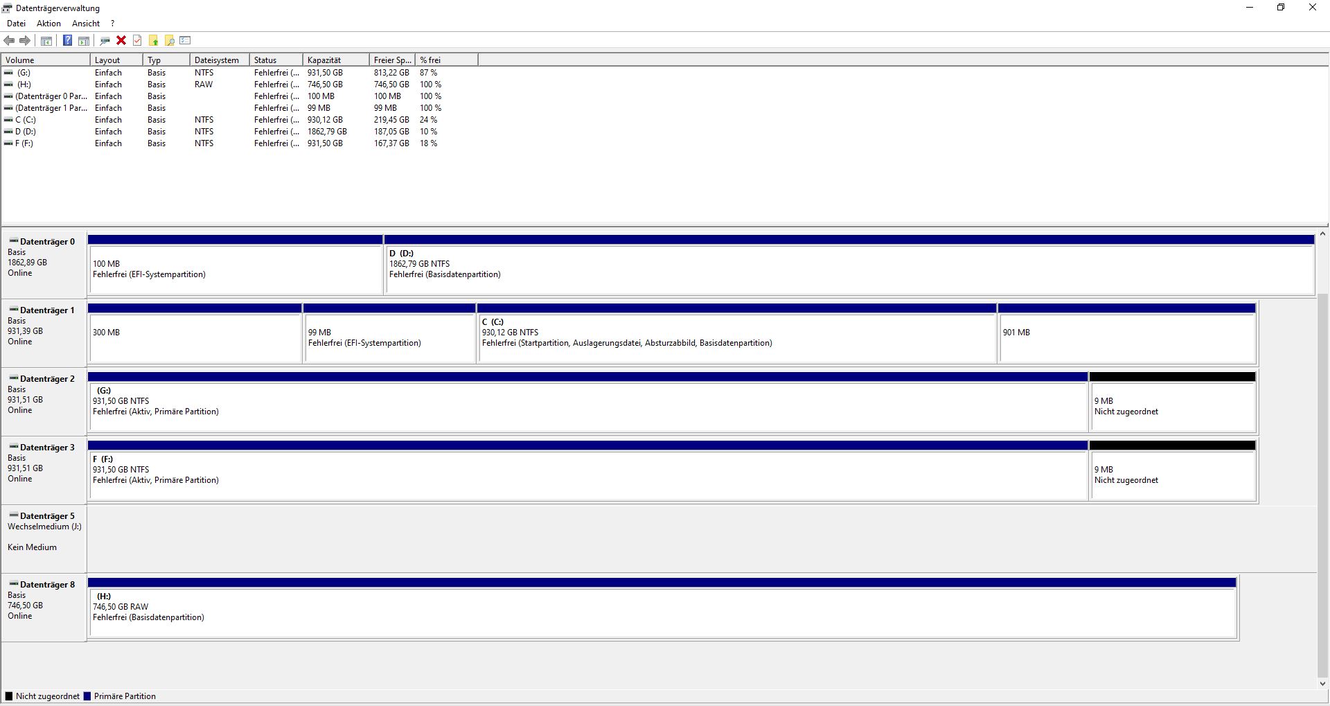 heute Mittag habe ich mich dazu entschlossen meine zahlreichen externen Festplatten neu zu formatieren, USB Sticks zu formatieren und meine Backup-Lösung zu überarbeiten, automatisieren und so weiter. Nachdem ich schon an USB Sticks verzweifelt bin, die sich nicht mehr formatieren haben lassen, jetzt das nächste Problem. Meine 3 TB WD Blue Platte, die vorher 2,72 TB angezeigt hat, hat nach dem formatieren in der Datenträger Verwaltung nur noch 746 GB die ich zuordnen kann. Der Rest scheint verschwunden.