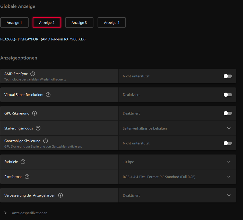 ich habe an meinem Racing-Rig 3x den iiyama G-Master GB3266QSU-B1 angeschlossen sind sie an einer XFX Speedster MERC 310 Radeon RX 7900 XTX Black Edition. Die äußeren Monitore laufen mit Freesync nur der mittlere nicht. Im OSD vom Monitor ist es ausgegraut und in der Adrenalin Software seht das der Monitor es nicht unterstützt.