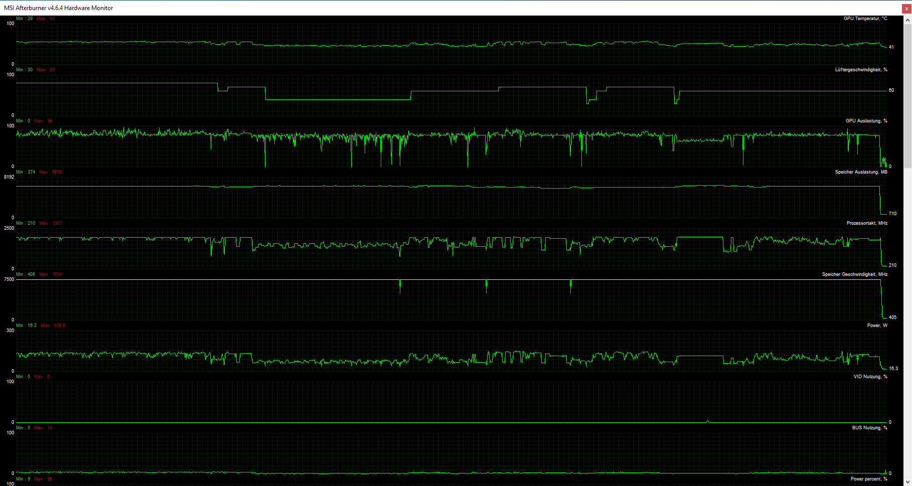 Die GraKa läuft lt. HWInfo so ziemlich konstant, unabhängig der Last, oder eben ohne Last auf 1650 U/min. Kann aber nur im HWInfo die Geschwindigkeit sehen.