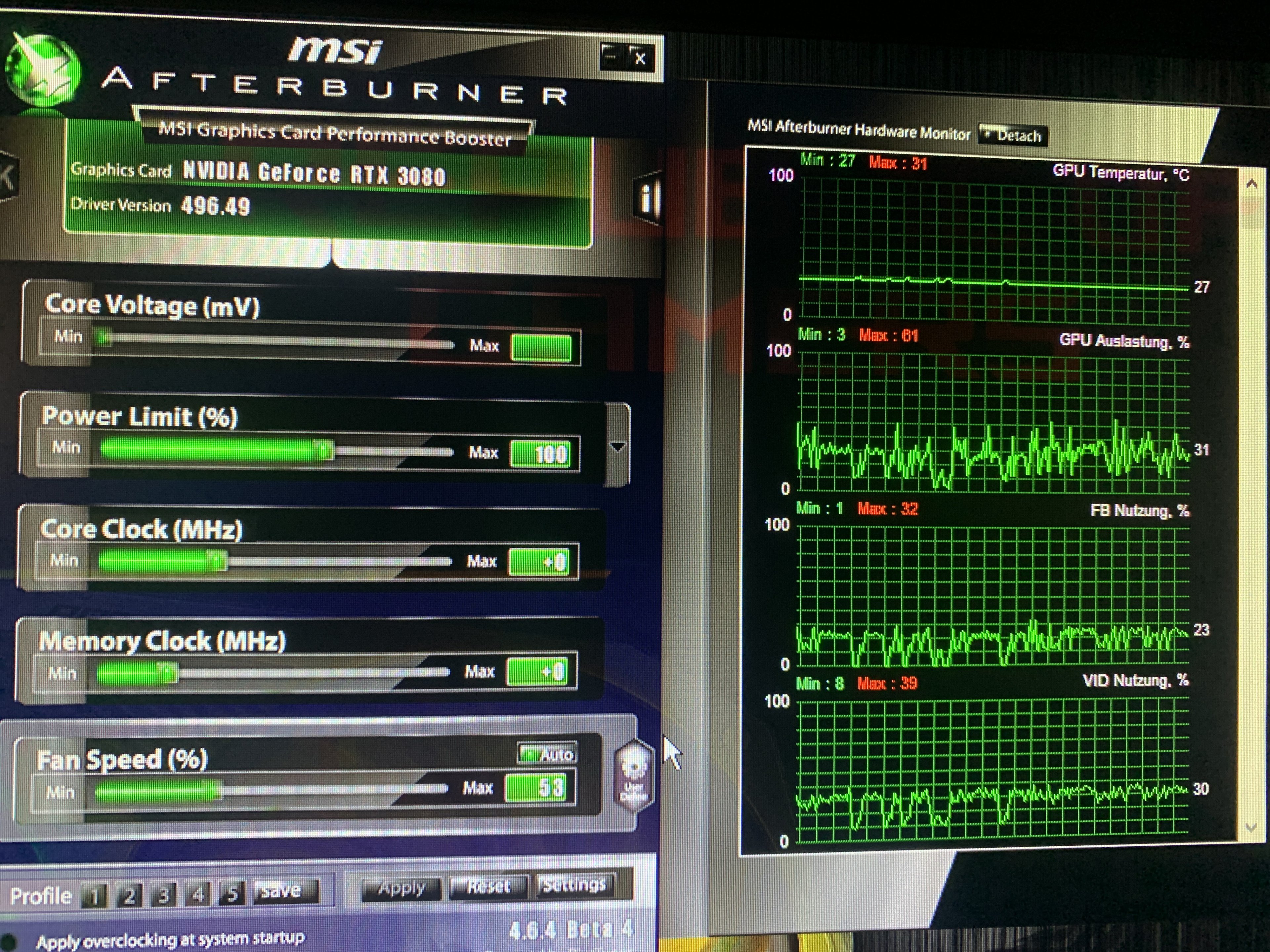 2. Moin meine 3080 dreht die Lüfter im Desktop obwohl da ja nix an Leistung benötigt wird und frage mich wieso da so ist und wie ich das so machen kann das die Lüfter erst ab 55 Grad oder so angehen.