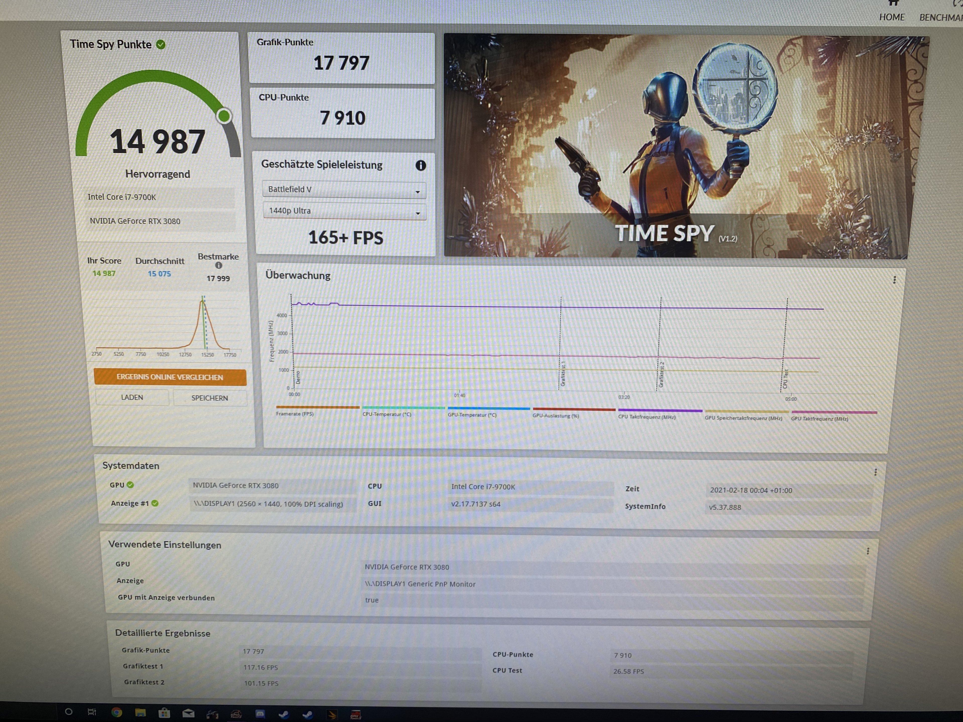 Bei manchen spielen passen die FPS, bei anderen wie Warzone zum Beispiel, bin ich weit unter den Benchmarks die man auf Youtube finden kann. Selbst beim 3D Mark (Kaufversion) erreiche ich beim Benchmarktest von Time Spy Test 12.300 Punkte, ich hab es irgendwie auch schon 15.000 Punkte geschafft. Ich kann nicht verstehen an was es liegt, ich hatte jetzt schon häufiger nach dem Wechsel im XMP Profil, Windows neu aufsetzen oder beim Umstieg auf 3600 MHZ Arbeitsspeicher, dass ich plötzlich ein Performance Boost von ca 30-40% hatte. Mit dem Neustart war es allerdings wieder alles auf Standard.