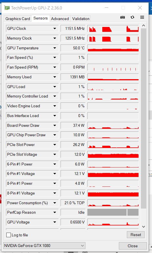 Interessant ist auch, dass die GPU teilweise dauerhaft zwischen 1100 und 1700Mhz läuft, selbst wenn ich den Browser zu mache. Der Takt fällt dann immer nur ganz kur auf ~300mhz (sieht man ja im Verlauf)