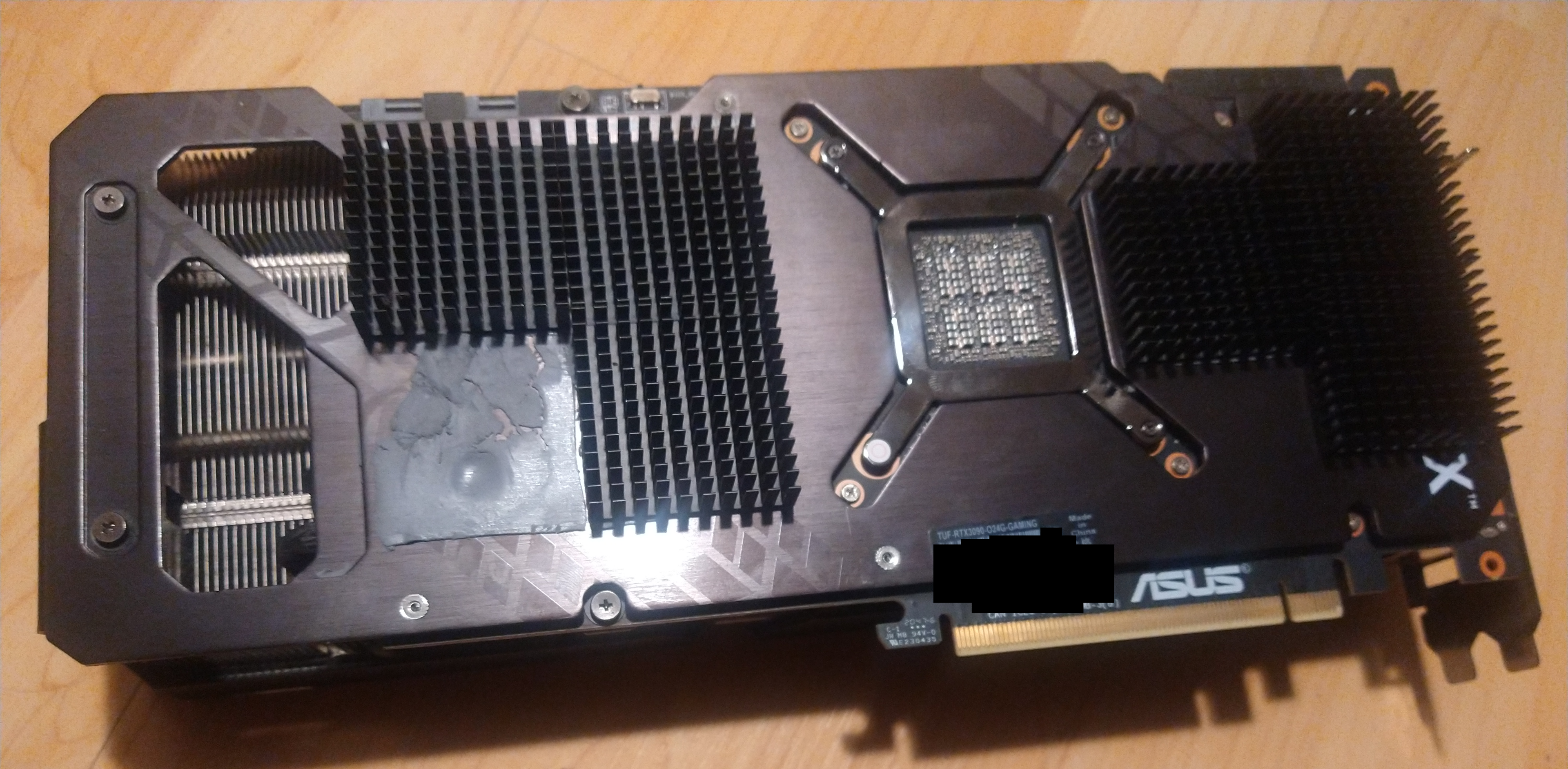 Mir ist dieses Teil auf der Backplate einer RTX 3090 Asus TUF Gaming OC runtergegangen, hat sich gelöst, ich hab es jetzt einfach wieder draufgepresst (besser gesagt mit Druck draufgelegt weil es hält nicht mehr richtig.)