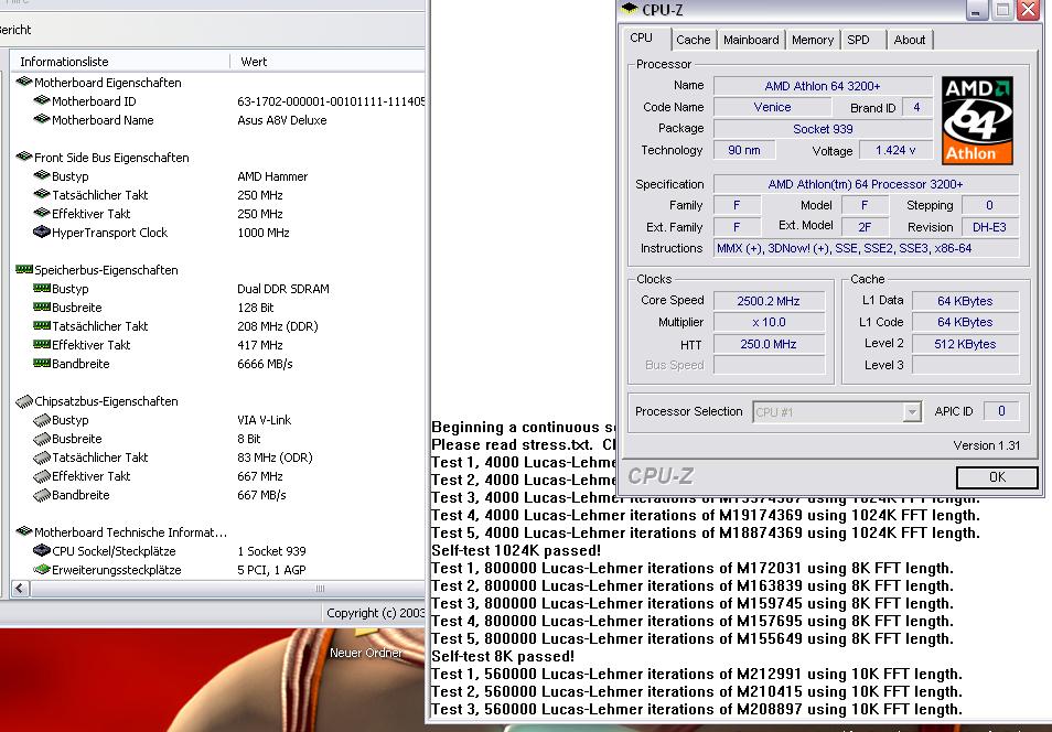 Ich muss nur herausfinden, warum die CPU damals mit 1,45er VCore und 250FSB (2,5GHz) stabil lief. (siehe Anhang)