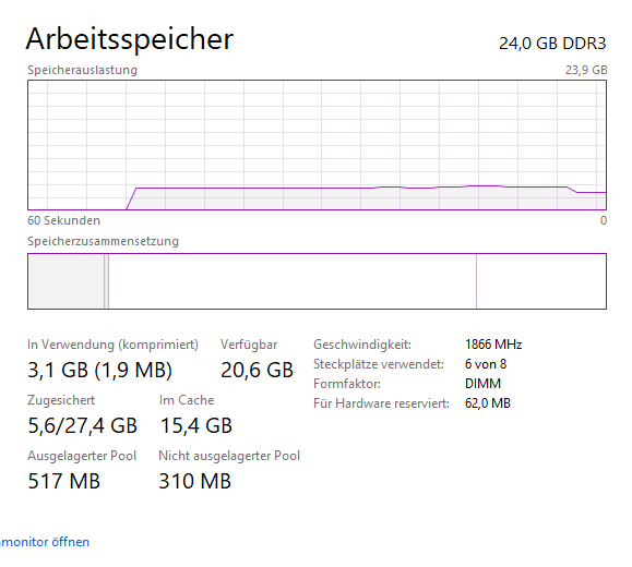 Ich hab Windows neu Installiert und auch im Taskmanager werden nur 24GB angezeigt.