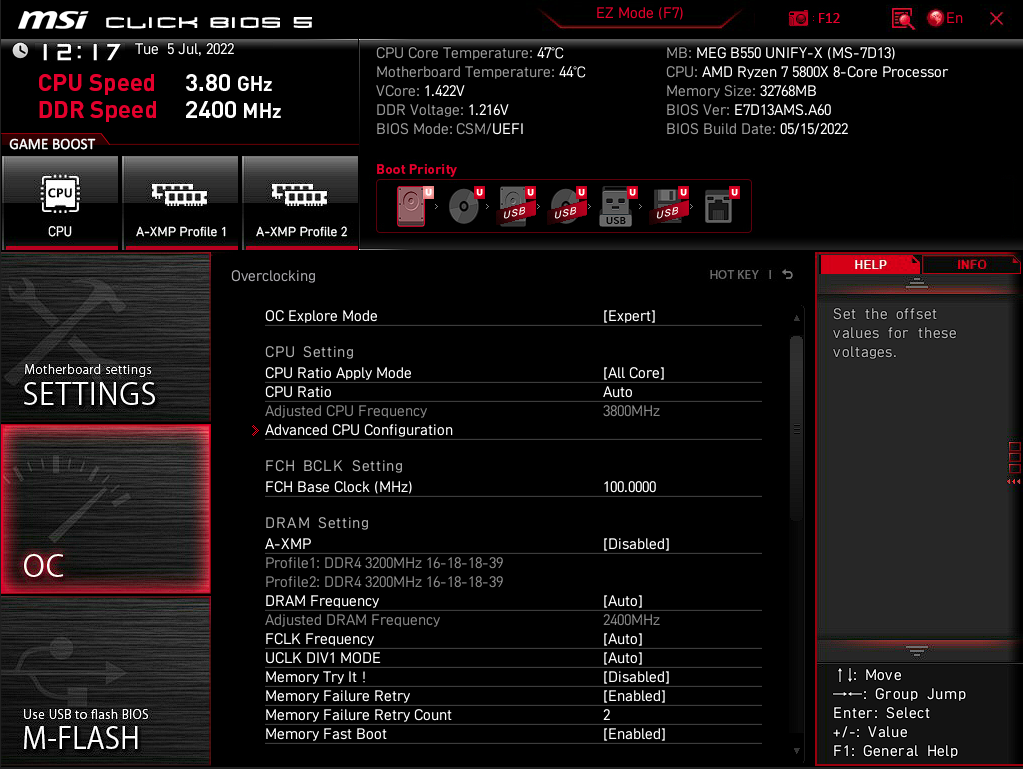 Schalte auch mal dein BIOS mit der F7- Taste in den Advanced Mode und klicke dann dort (links) auf das Feld OC!