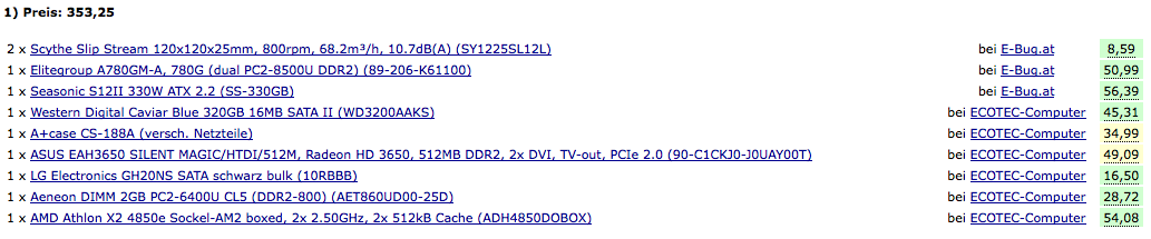 Es sah in der Liste nur so aus, als ob das mit Netzteil verkauft würde (was von Haus aus kein gutes sein kann - vorallem bei dem Preis) und Du halt auch das Netzteil von Seasonic mit in der Liste hattest.