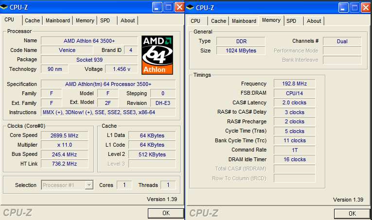 AMD 64 3500+ venice @ 2475mhz
