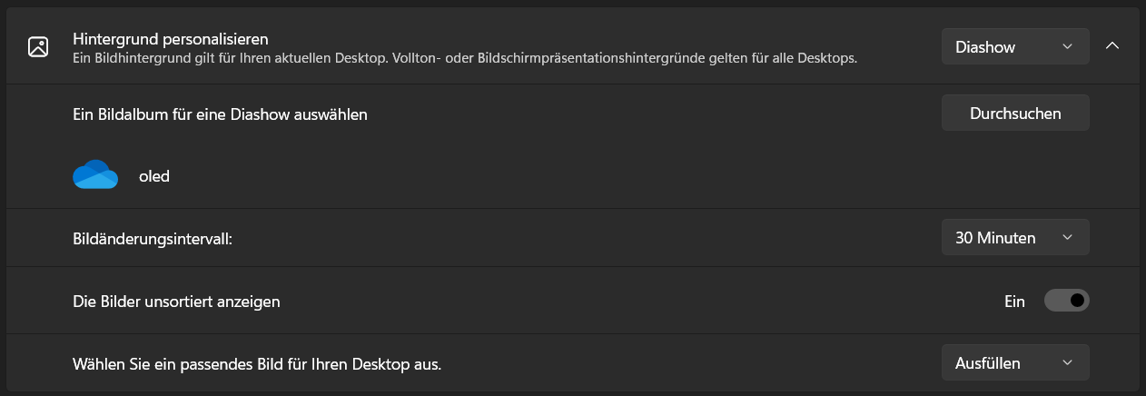 Ob schwarz oder wechselnde Hintergrundbilder wenn der Bilderpool groß genug ist sollte kein Unterschied machen außer das du mit schwarz weniger Strom brauchst.Pixel33 schrieb:4. Bildschirm Hintergrund habe ich Bing Wallpaper, täglich wechselnd. Muss es wirklich ein schwarzer Hintergrund sein, der alle 30sec wechselt?