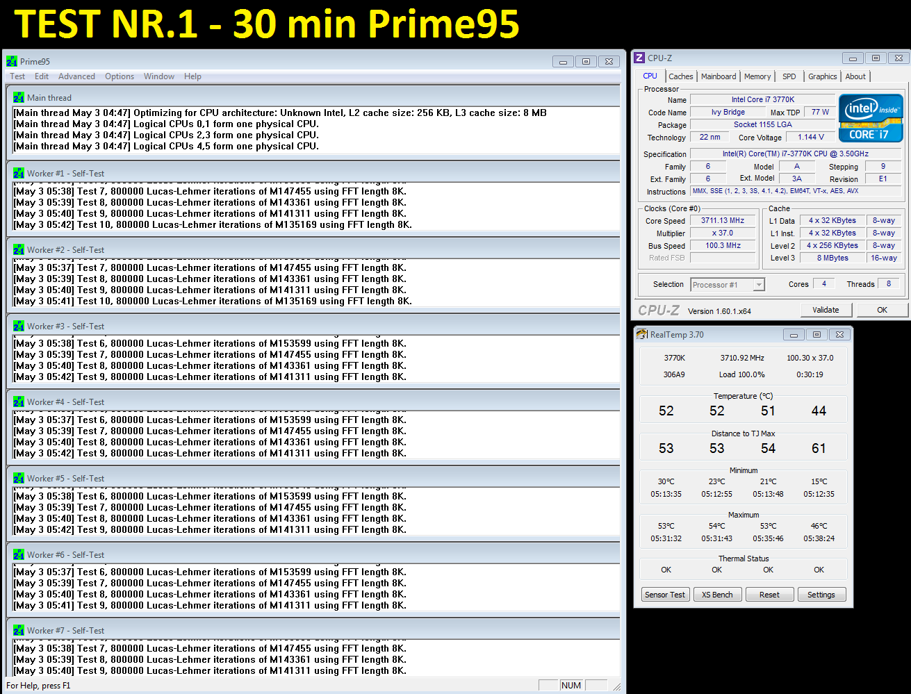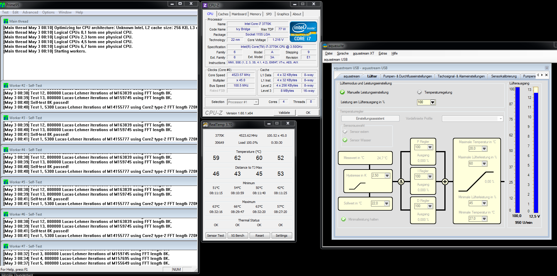 -Aquasuite, Realtemp 3.70, Furmark, Prime95
