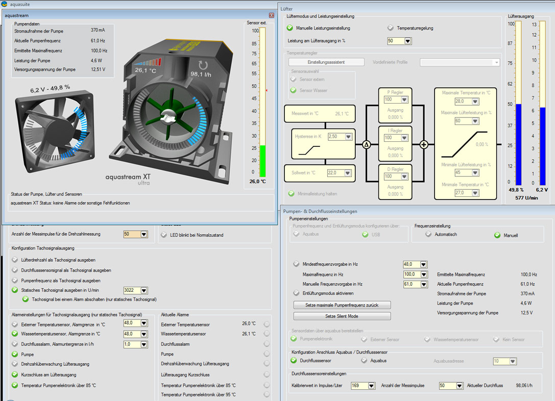 -Aquacomputer Aquastream XT (~100 l/std, Lüfter 50% 6,2 Volt)