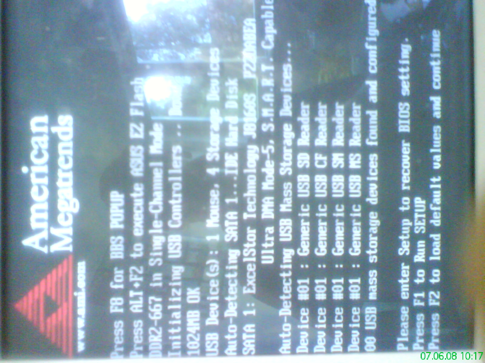 So einen "bug" hab ich mal bei meinem bios gehabt, mach den monitor mal aus und wieder an, evtl. hilft das, wäre zu klasse wenn der rechenr wieder läuft ^^
