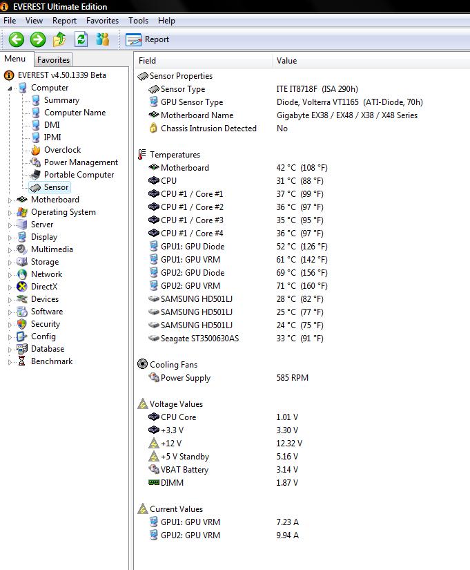 Habe nen 550W Netzteil, 4GB GEIl Black Dragon, E6600 mit nem Groß-Clockner Kühler (läuft im mom ~45°), Creative Sounblaster und 3 SATA Festplatten dran. Kann es vllt mit zu wenig Strom zusammenhängen?