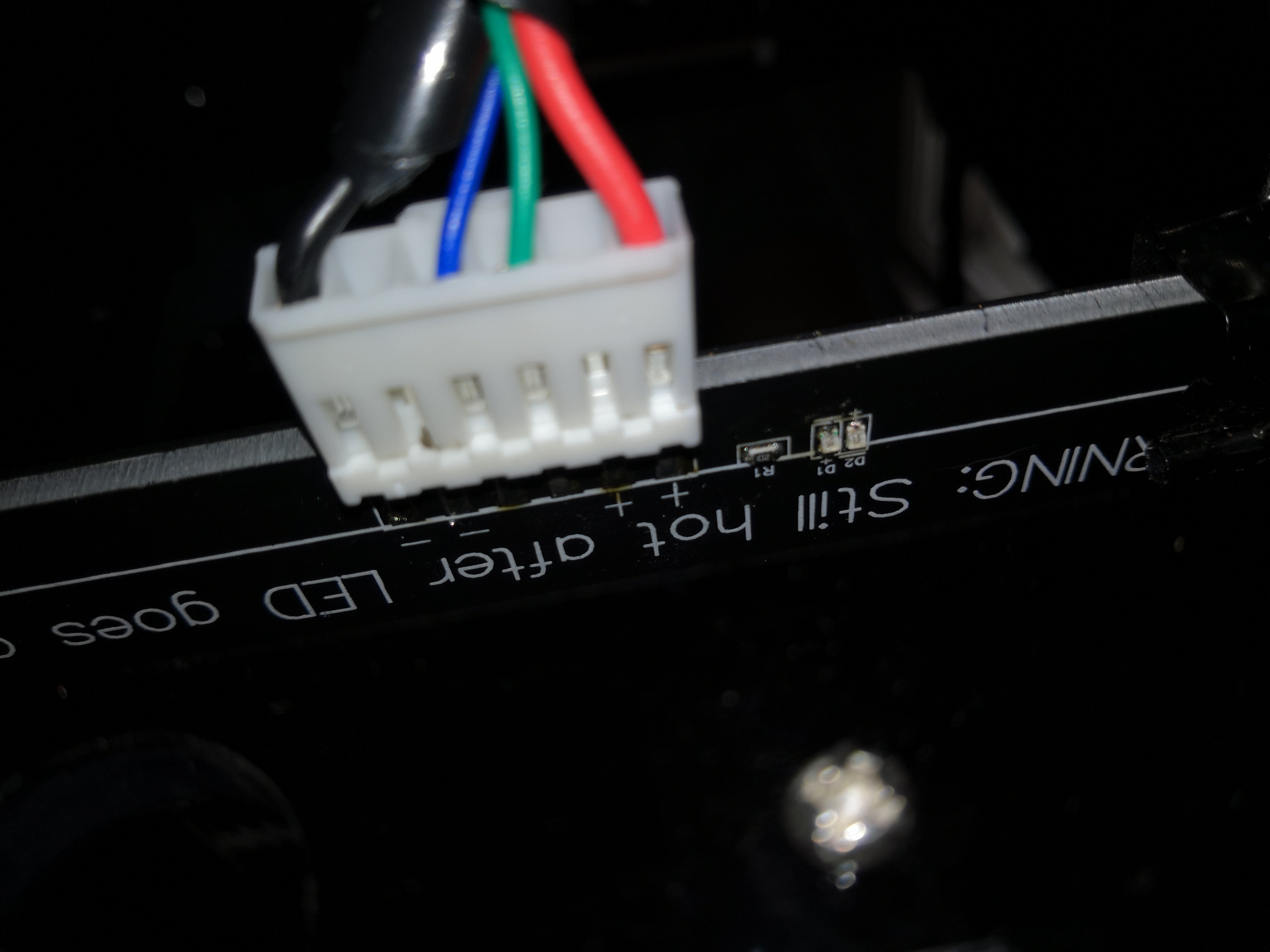 Das Kabel zwischen Controllerboard und Heizbett ist Brandursache Nummer 1 beim A6/A8. Der Leitungsquerschnitt und Kontaktquerschnitt ist nicht angemessen die anliegenden Ströme zu führen. Anet hat irgendwann einmal nachgebessert und eine Doppelleitung von Controller zum Heizbett geführt, welche hier aber nicht verwendet wird.