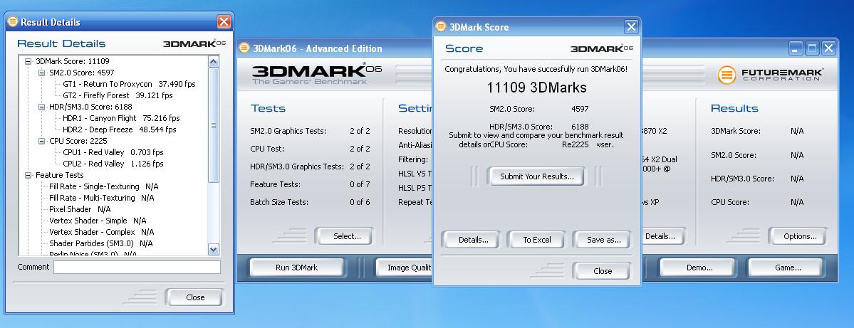 Da es aber nicht mein vista ist und mein kumpel es wieder wollte habe ich weiterhin versucht XP zum laufen bekommen. Nebenbei ich habe ich Media Center Edition 2005. Vorgestern habe ich das X-te mal XP installiert und wieder hat ein prozessor probleme gemacht. Doch dank dessen dass ich automatische windowsupdates eingestallt habe, hat es irgendwas installiert und seit dem läuft das system. Mittlereweile habe ich alle updates gezogen auch den catalyst 8.3 installiert (wie auf vista). Doch nun komme ich zu meinem problem: Ich habe im 3dmark06 nur noch 8333 Marks (letzer test von 4). Wie kann sowas sein???
