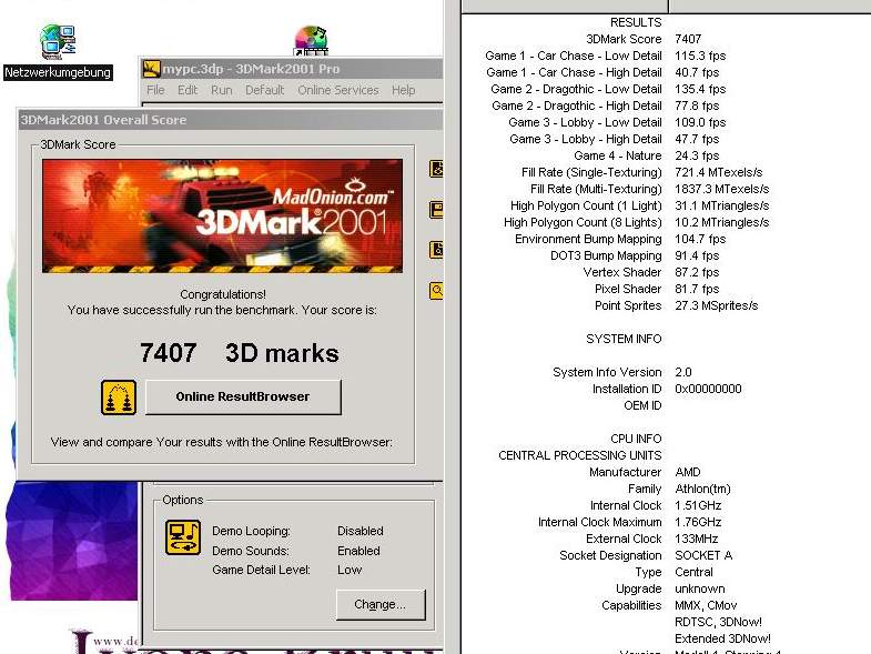 Wie schafft Ihr denn solche Werte ?? Bei 3D-Mark 2001 kommen gerade mal 1939 Punkte heraus .