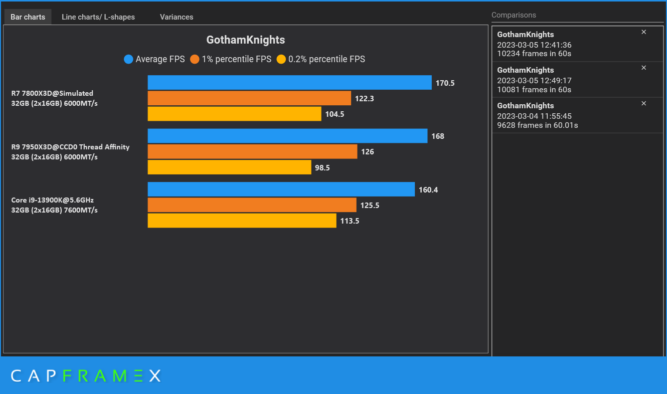 Zer0Strat schrieb:So, hier mal ein Beispiel (Gotham Knights) mit speicherbedingten Spikes. Der 13900K hat am Anfang einen Spike und "groovt" sich dann ein. Danach sind die Spikes deutlich kleiner. Dieses Verhalten ist reproduzierbar.
