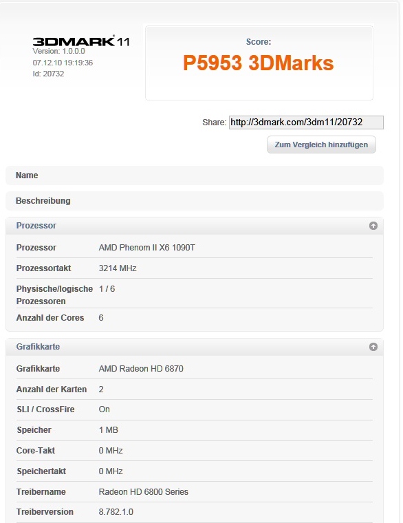 Zumindest bei mir scheint es ein Problem mit der Hardwarekennung von 3dMark11 zu geben. Wenn ich den Haken SystemInfo scannen im Reiter Hilfe deaktiviere, läuft der Test fehlerfrei durch und man erhält am Ende einen Score