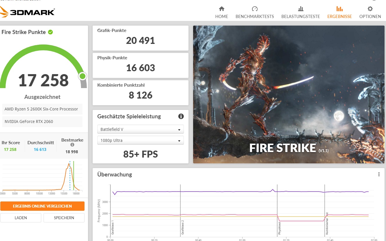 Finde es faszinierend, dass sich mit Ampere absolut nichts bei der Effizienz getan hat. Hier mal zum vgl. meine 2080 Ti bei 165W PL (to be fair, läuft dann natürlich mit sub 0.75V in einem effizienteren Spannungsbereich):DaHell63 schrieb:Ich komm mit meiner uv 3070 (160W) mit 8079 Punkte auf einen leicht höheren Score.