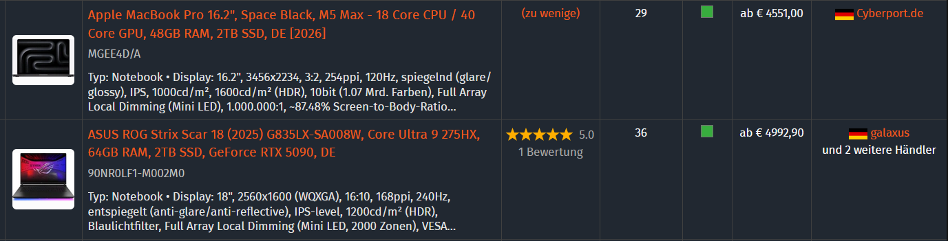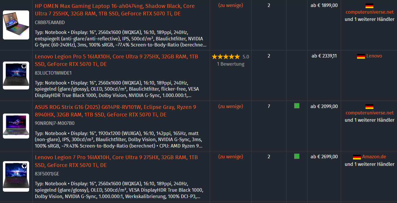 Dafür gibt es gaming-Notebooks mit ner RTX5070 (welche einen echt winzigen die nutzt) schon für 1400€.