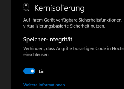 Is eingeschaltet, mal getestet, macht aber kaum Unterschiedcvzone schrieb:Vermutlich ist wieder mal Memory Integrity (HVCI) aktiv. Das ist inzwischen Windows Standard.