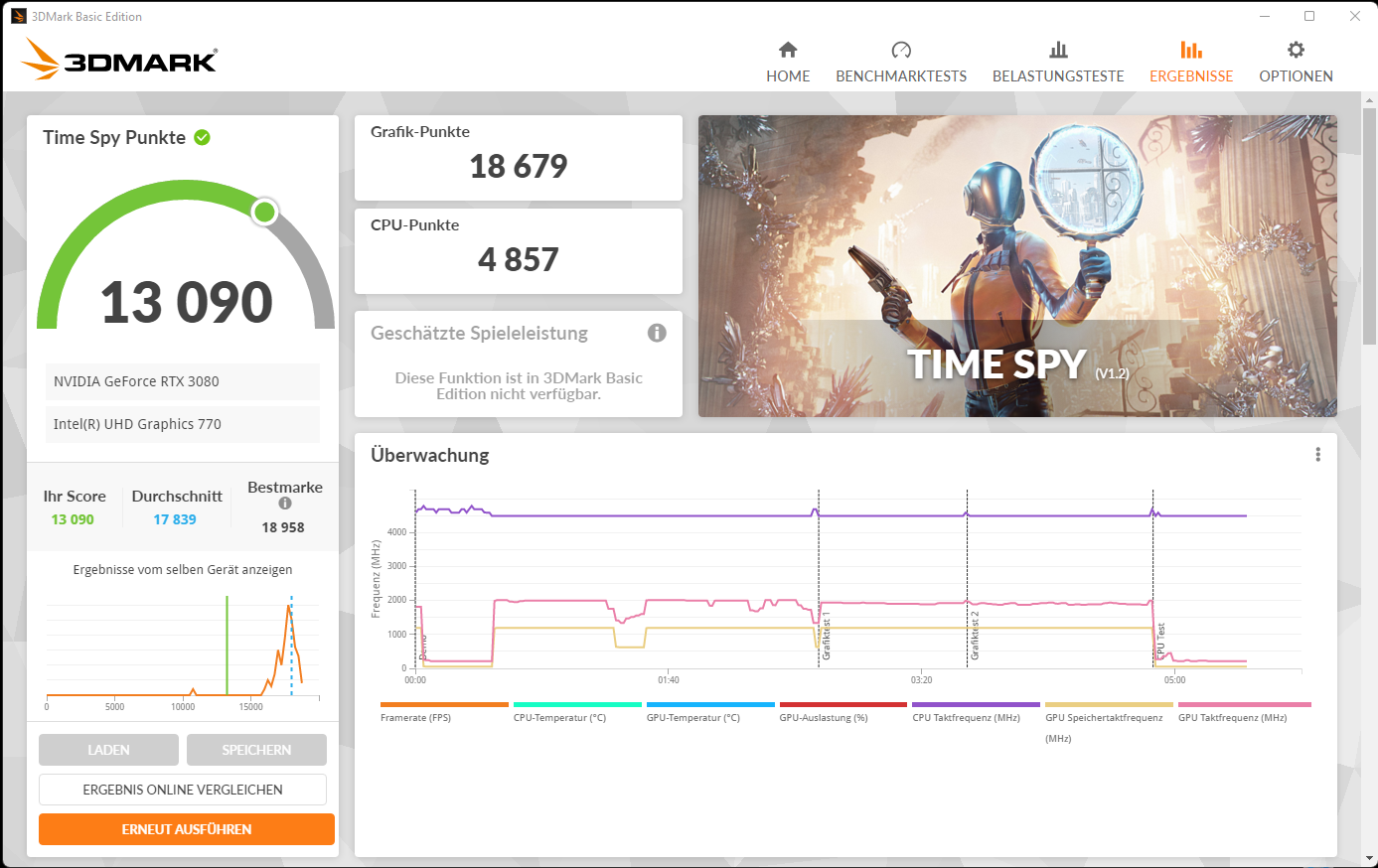 Darauf hin habe ich ein 3DMark TimeSpy Benchmark laufen lassen und dabei nur 4857 CPU Punkte erreicht, was natürlich viel zu wenig ist.