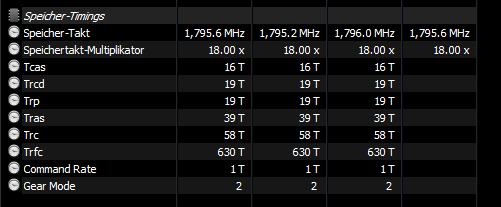 - Arbeitsspeicher (RAM): G.Skill DDR4-3600 CL16-19-19-39