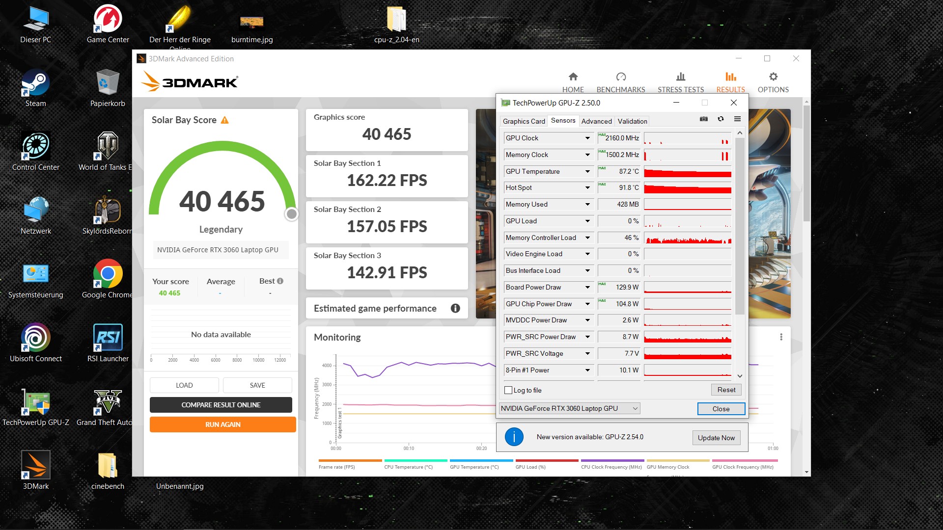 40851 Punkte @ FHD auf RTX3060/12GB,5950x,DDR4@2600 bei 355W