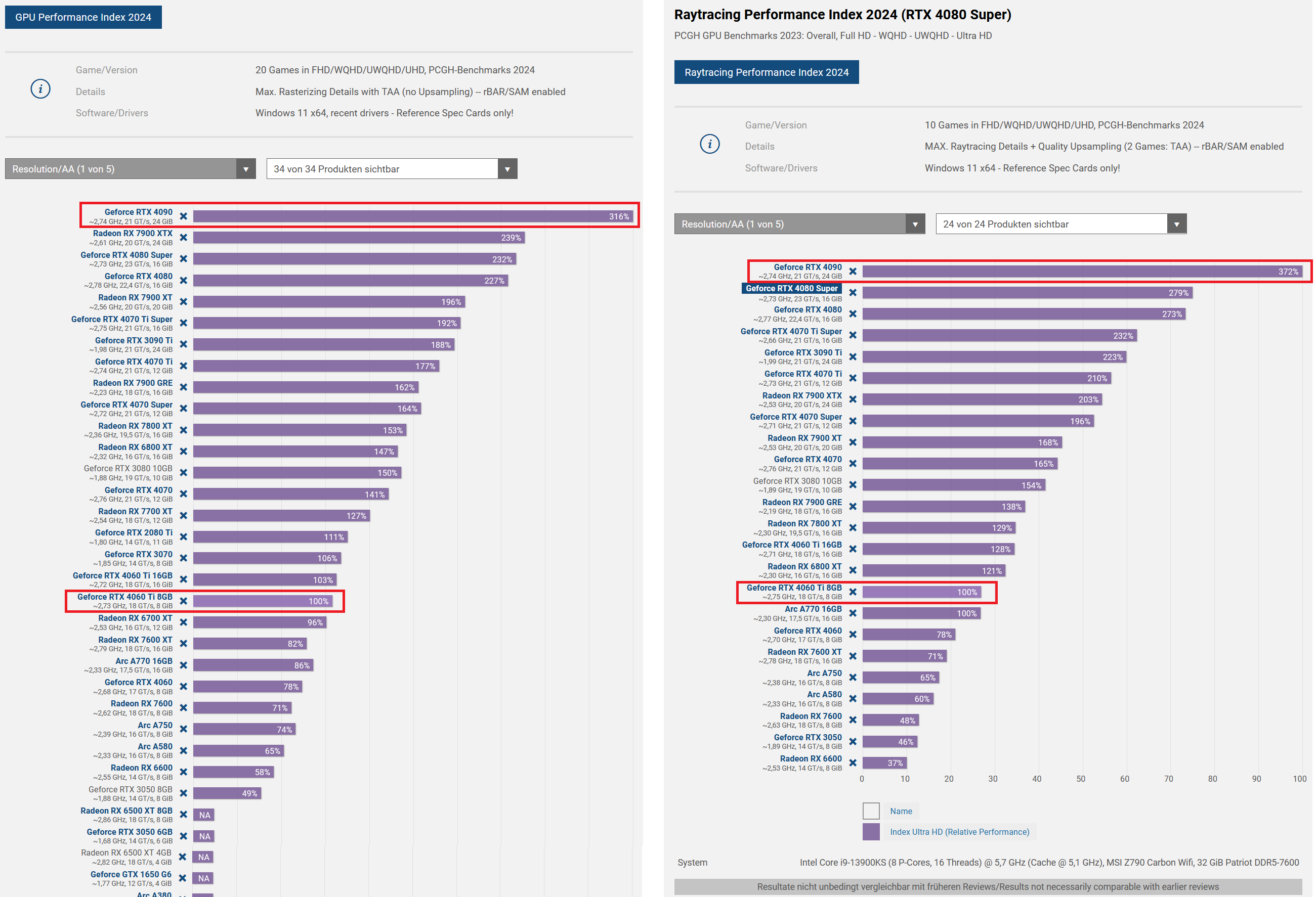 Und im Durchschnitt von 10 Raytracing-Spielen werden 372% Renderleistung gegenüber der 4060 Ti attestiert... zwischen 3060 Ti und 4090 Ti wäre der Abstand also ca. 390 - 400%: