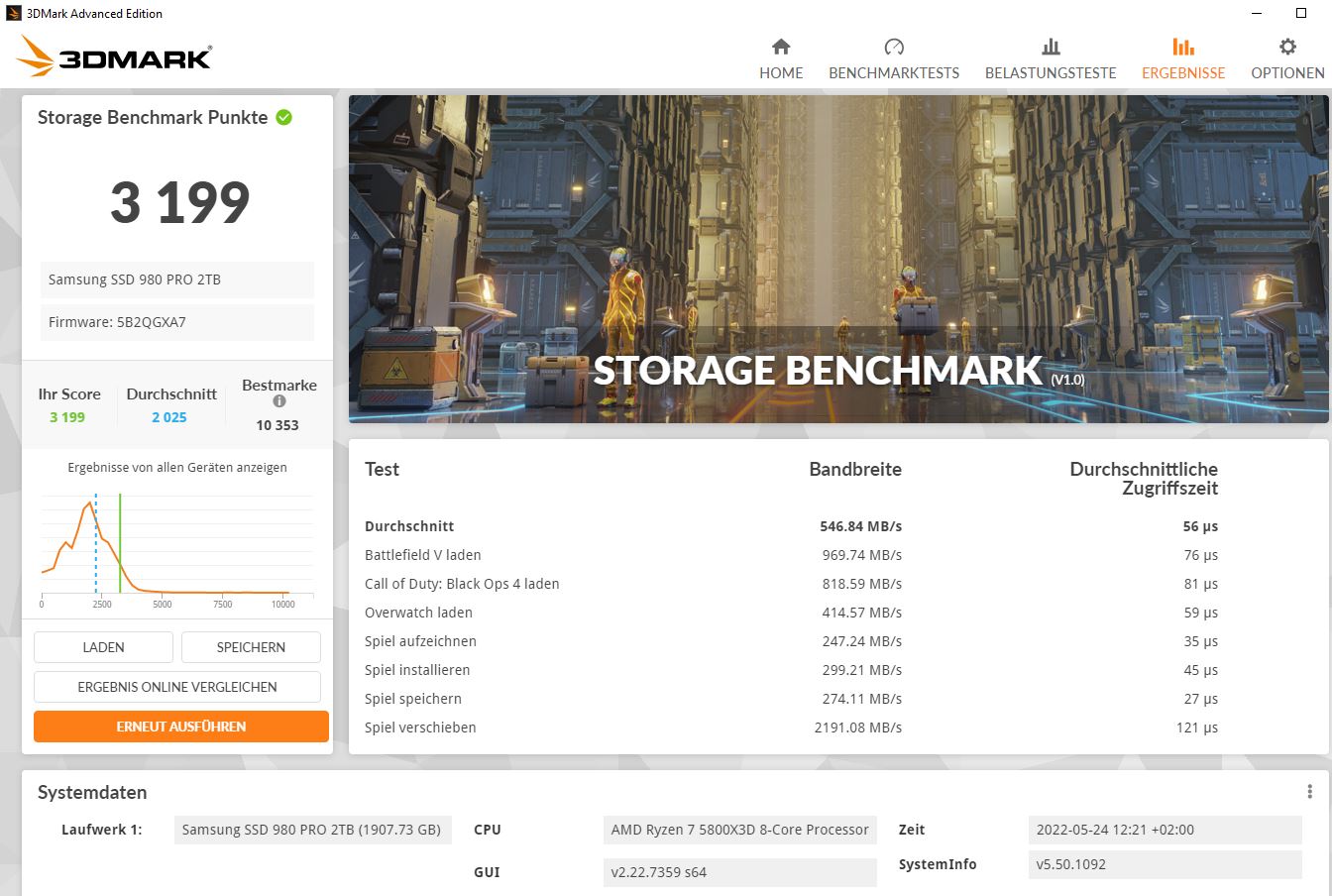 Gesagt getan. Beim 3D Mark gab es heute ein Update der die Einzeltests vom Storage Test beinhaltet und auch die Punkte mit anderen "vergleicht".r4yn3 schrieb:Aber vielleicht liefert man hier Teilergebnisse mal als Update nach, seitens des Entwicklers.