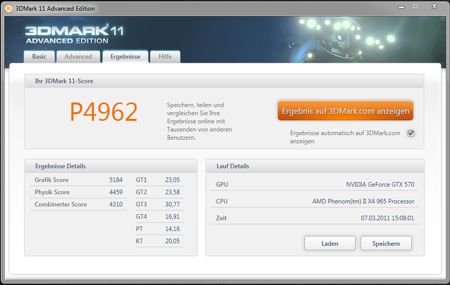 Sammelthread 3DMark06 / 3DMark Vantage / 3DMark 2011 - Zu wenig Punkte?